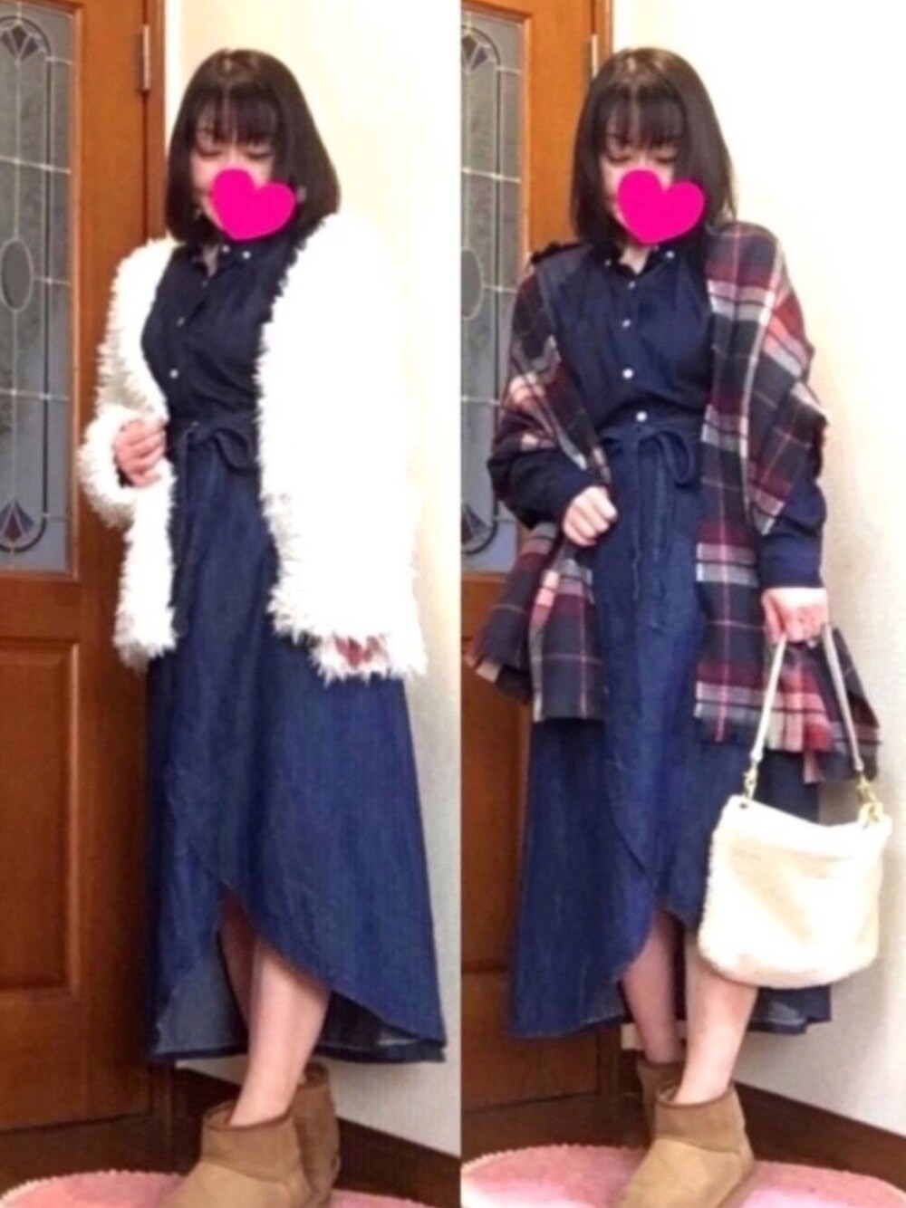 おはようございます☺️💖💖💖💖💖 ピーチです🍑🍑🍑 今日はデニデニフェスに参加させて頂きます❣️主催者さま宜しくお願いします🤗💕 デニムのシャツとスカートに、もふもふアウターとチェックストール💝💝💝あーんどムートンバッグ持ってみた🎵 デニデニは生まれて初めてなので、大目に見てください😆 皆さまステキな週末をお過ごし下さいね☺️🎵✨