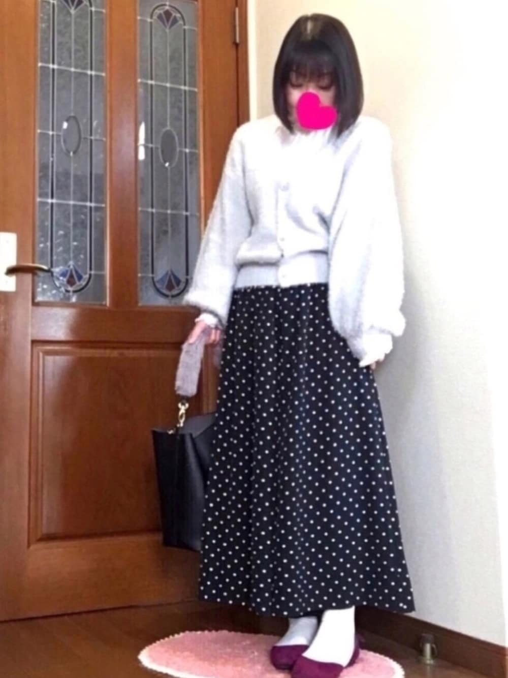 おはようございます☺️💖💖💖💖💖 ピーチです🍑🍑🍑 今日は、花ちゃんの真似っこコーデしました🤗💕 花ちゃんはキレイ目で可愛いらしさもいっぱいで、いつも、とってもお洒落なんですー😍❤️ コーデはフリルブラウスにグレーのカーデ、ドットのボトムス❣️花ちゃんは白スニーカーだけど持って無いので😆私はソックスとパーポーのローヒールパンプスにしてみました😙💜 花ちゃんのドットは、もっと大きくて、大きいドットも欲しくなっちゃいます❣️ 先日、しまパト行ったら春ニットが沢山売ってました🌷💖結局何にも買ってないのですが、これから、どんな春物買おうかなぁってワクワクします☺️💓 今週もステキな1週間になります様に😊❤️❤️❤️ いつも見て下さってホントにありがとうございます😙💖💖💖とっても嬉しいです🤗🙌💕