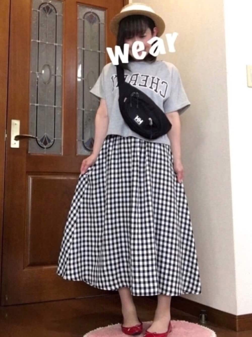 ピーチちゃん🍑のスカート「ギンガムシャーリングスカート」を使ったコーディネート