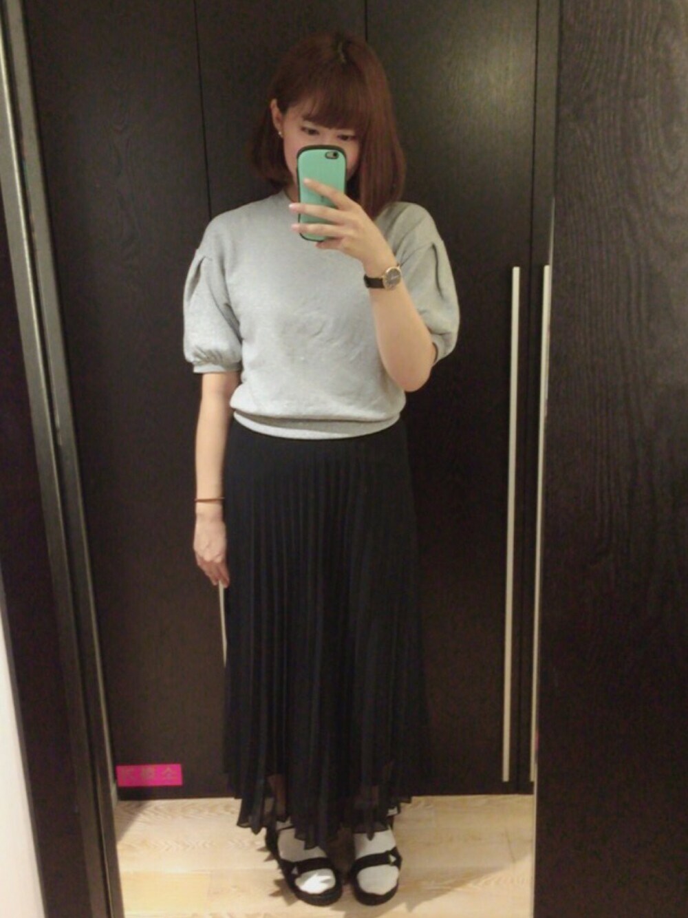 韓国1日目。 ユニクロのスカートかわいいです。 SHAKAのサンダルとよく合うので重宝しそうです💕