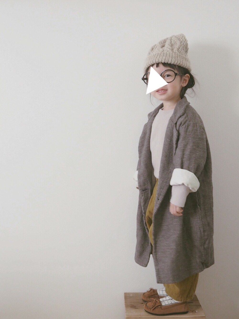 ブラウン系のTシャツ/カットソー、グレー系のジャケット/アウターを着用したキッズの冬コーディネートの1枚目の写真