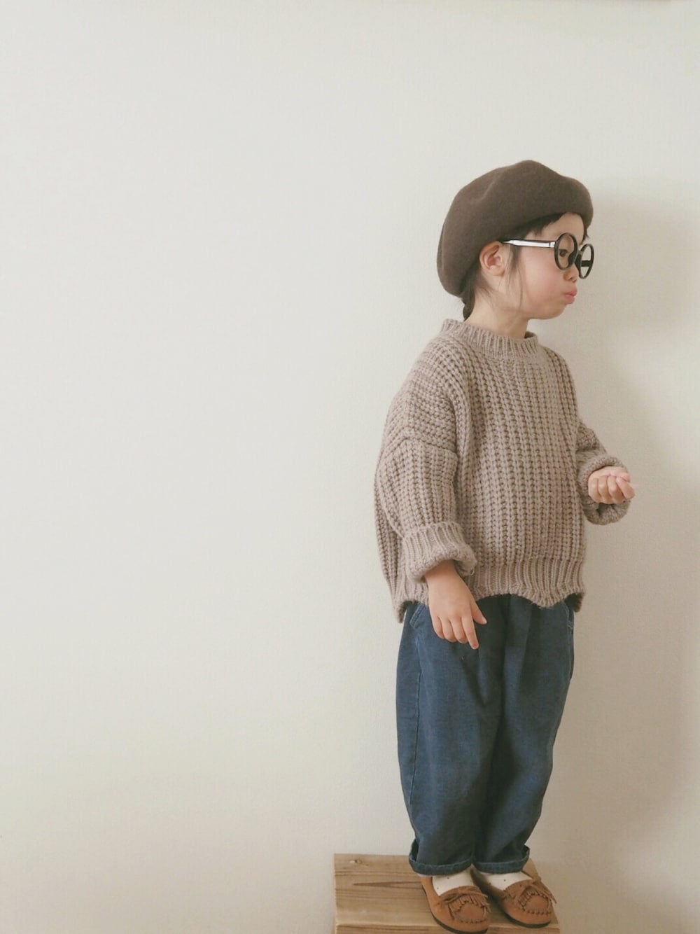グレー系のニット/セーターを着用したキッズの冬コーディネートの1枚目の写真