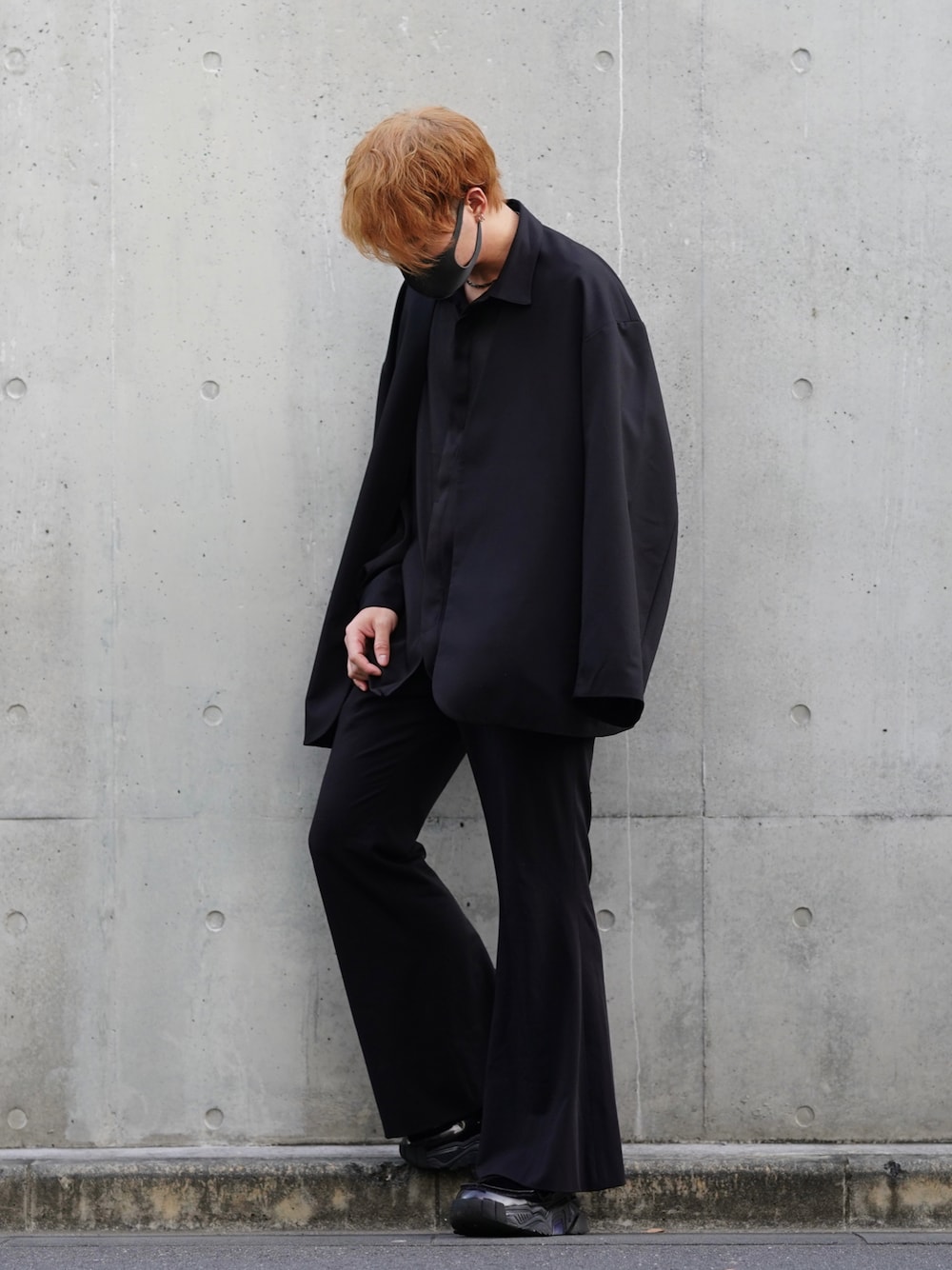 写真映えするオールブラックコーデ🔥 撮りながら 「イキってんなぁ、」と連呼してました。笑 ジャケット+フレアパンツ+ローファー... だいぶ攻めたコーデです。。。! (短いネックレスもいい感じっっっ)