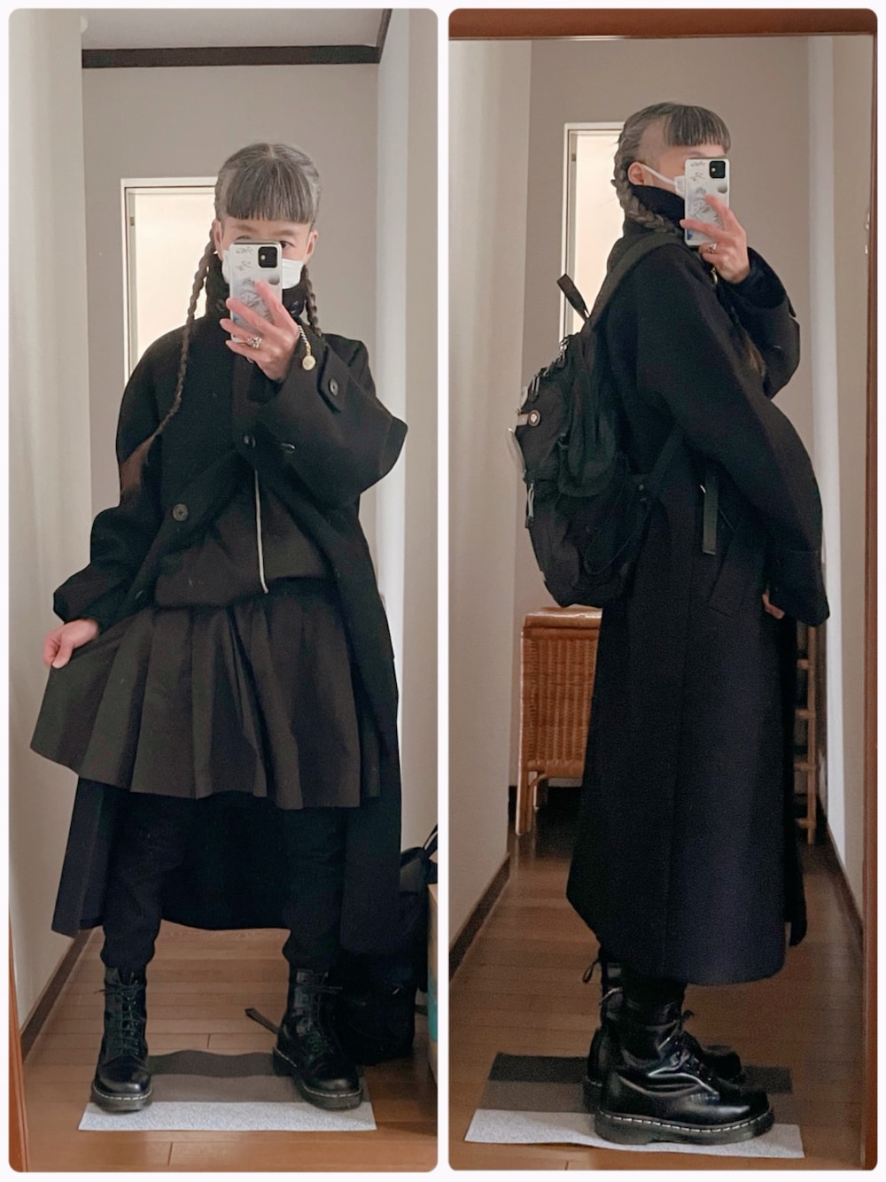春どこ行ったん… 所用で外出ですが、真っ黒になっちまった… ヘアスタイルはスッキリ見えるので、編み込みおさげに スカートの下はまたレギンスパンツ×ヒートテックレギンス、真冬の組み合わせ!
