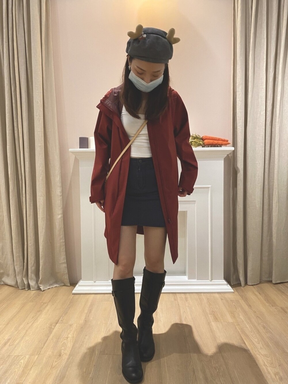 こんにちは! 今日めっちゃ雨が降った☔️肌寒い季節になっているので、雨風が通しにくいジャケットにした。雨の日にも濡れず、とても便利なジャケット🧥 足を出しすぎないように、ロングブーツを履いている。こちらのブーツは高校時代からずっと持っていて、まだ壊れていない👢! とても丈夫なブーツけど、どこのブランドはもう忘れてた🧎🏻♀️ 服とスカートは韓国の通販で買ったもの。ちょいギャルな感じのスタイルはかなり好きなので、こういう短いスカートが好きだよ😻 以上、今日のコーデでした。