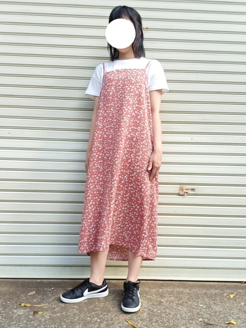 こんばんは❣️ いつもウォッチいいねありがとうございます✨ 今日は花柄の夏らしいキャミワンピにNIKEの黒のシューズで引き締めたコーデとなっています😄💖