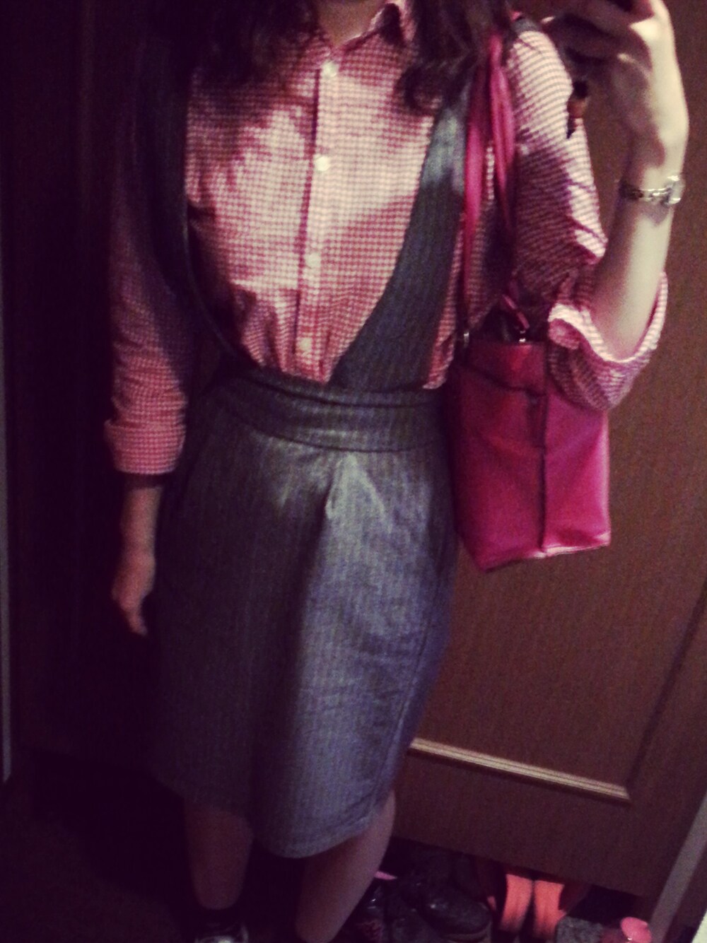 ギンガムチェックとつなぎタイトスカート