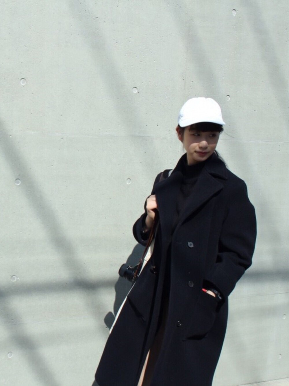 東京にきております。友人のコートを借りて、いつものキャップをかぶってのんびり散策。