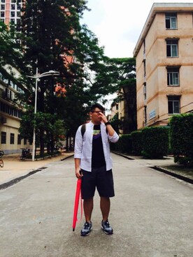 「NIKE(ナイキ)のアイテム(Tシャツ/カットソー、ブラック系)」を使った、诚实可靠小青青さん(メンズ)の夏コーディネート
