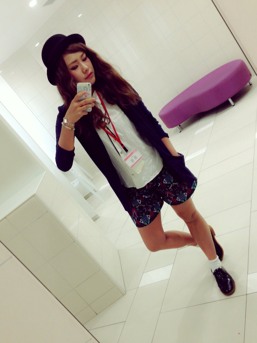 いずみたに しおりのハット「フェルトボーラーハット」を使ったコーディネート